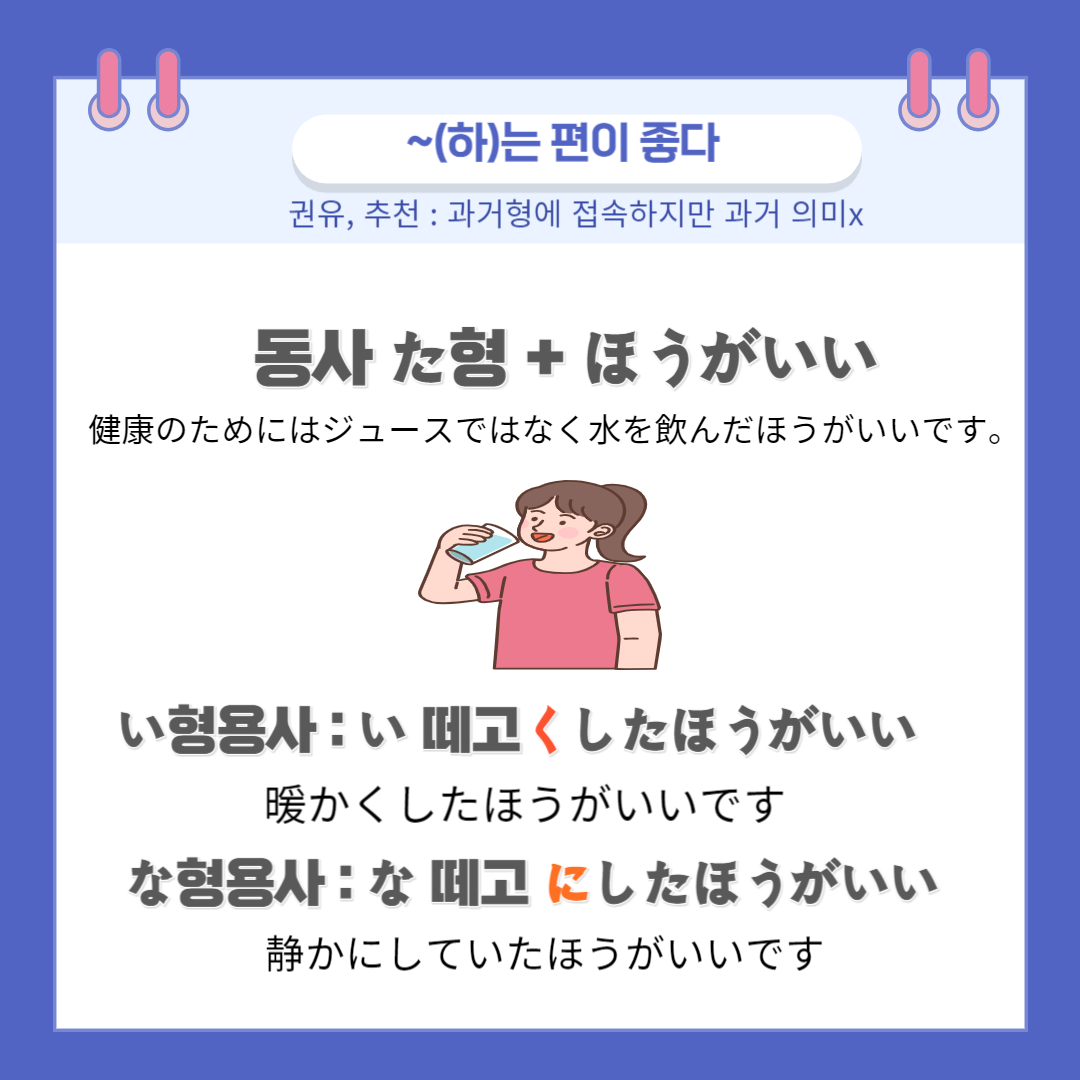 | 권유: ないほうがいい ~하지 않는 편이 좋다. (0) | 2023.08.09 |